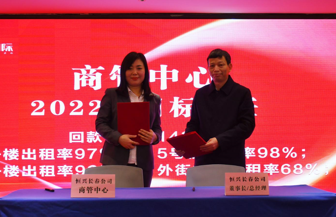 楊聯(lián)城董事長(zhǎng)分別與營(yíng)銷中心、商管中心、美居酒店、物業(yè)中心、企劃部簽訂2022年目標(biāo)責(zé)任書(shū)。