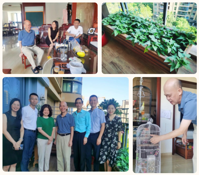 集團(tuán)原副董事長羅映南家中,兩只鸚鵡吸引了大家注意,原來羅董在家逗鳥、種菜,在都市一隅醉夢“田園光景”,好不快活。據(jù)羅董太太介紹,本學(xué)期進(jìn)入華師希平雙語學(xué)校就讀的大孫女,已化身學(xué)校小小宣傳員,在小區(qū)內(nèi)逢人便介紹希平學(xué)校老師們有趣的教學(xué)方法,分享她在校園感受到的快樂。言談中,皆是兒孫繞膝盡享天倫的福氣。